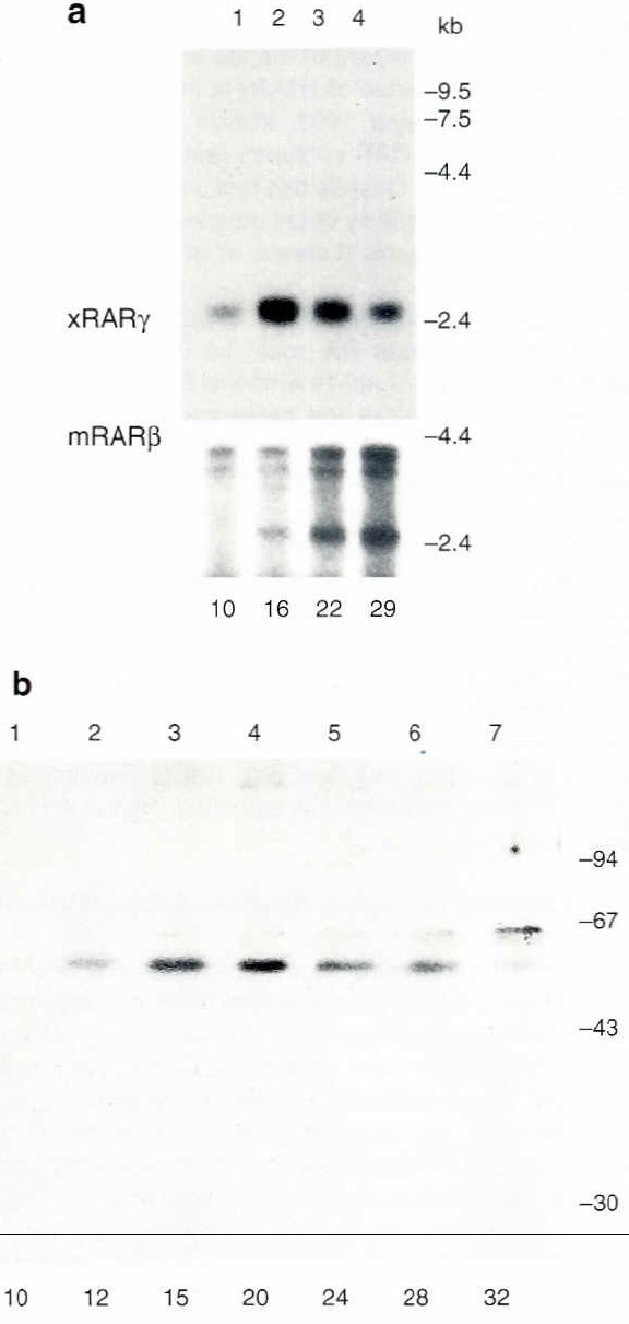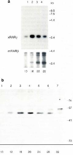 Fig. 3. Retinoic acid receptor mRNA and protein expression during