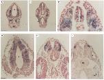 xCOUP-TF-A is expressed mainly in the branchial arches and ventrally in the eyes. (C) Section through the spinal cord. xCOUP-TF-A is expressed