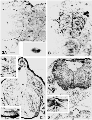 axons (solid arrows). D: Transverse section of stage 26 embryo. Class I1