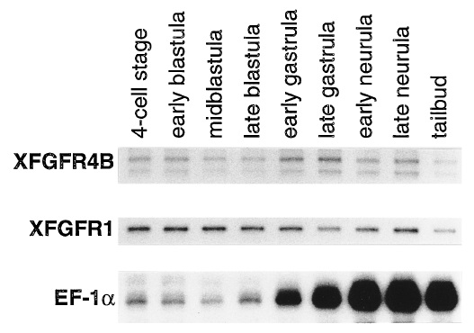 in Fig. 2. Explants cultured until the midgastrula stage expressed high levels of XFGFR4B and XFGFR1 mRNA whether