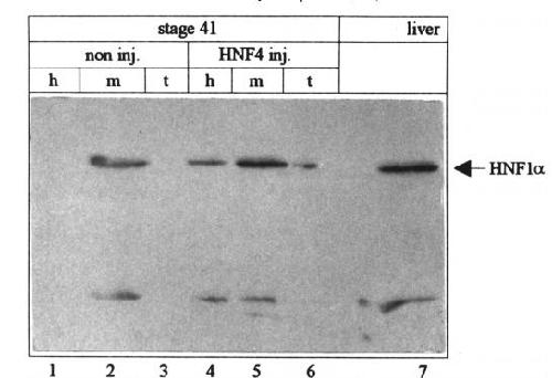 Fig. 2. Injection of HNF4 mRNA into fertilized Xenopus eggs leads to ectopic expression of HNFla. mRNA encoding rat HNF4 was injected into