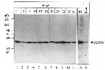 Western blot using the monoclonal antibody XH4 specific for HNF4. The migration of a molecular weight marker is given on the left side. In lanes 12