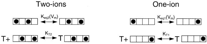 Affinity and location of an internal K+ ion binding site in shaker K channels.