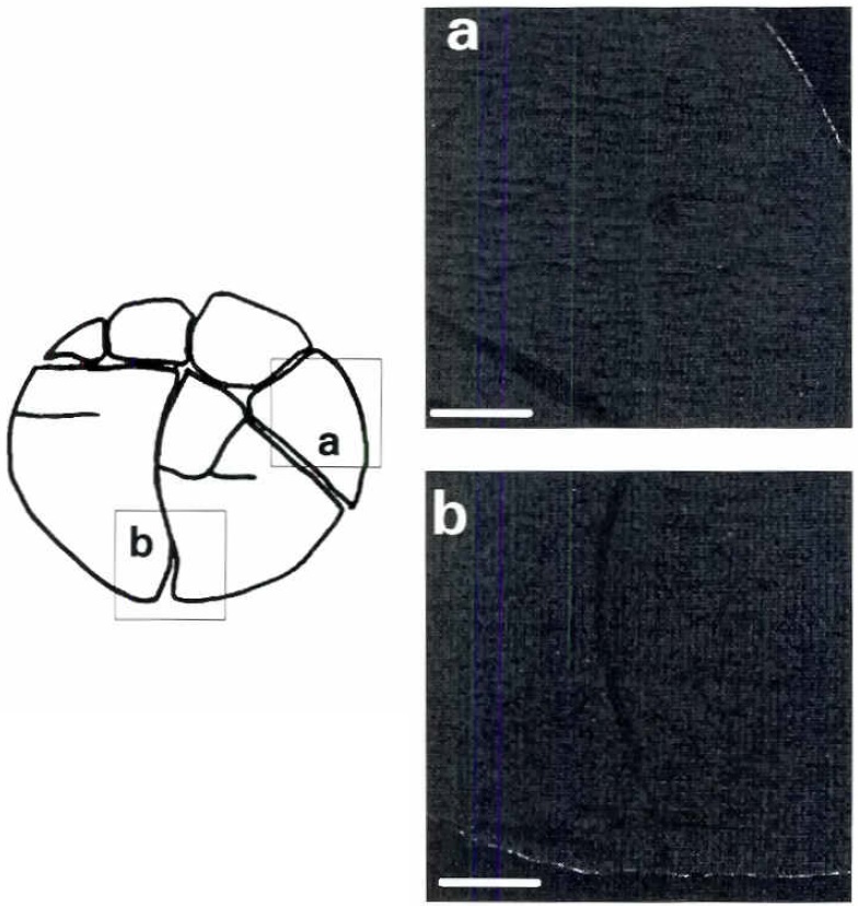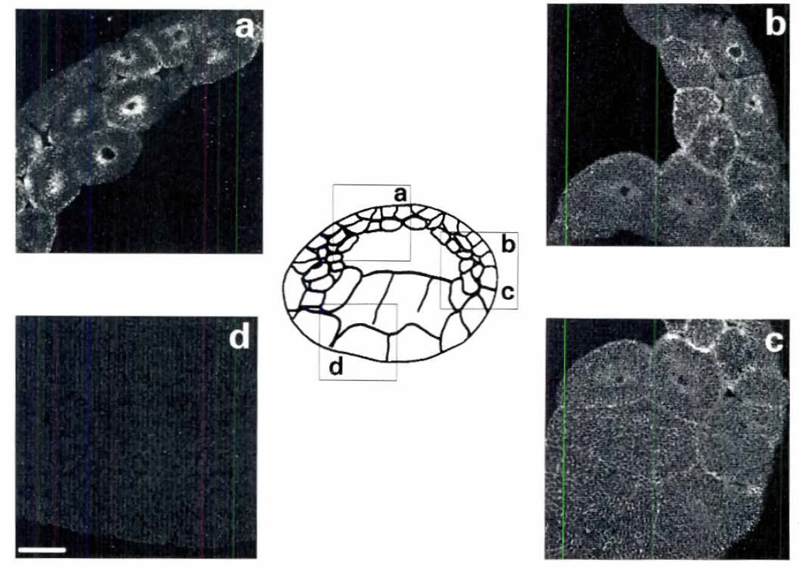 No labeling was observed in the animal (a) or rhe vegeral (bl half