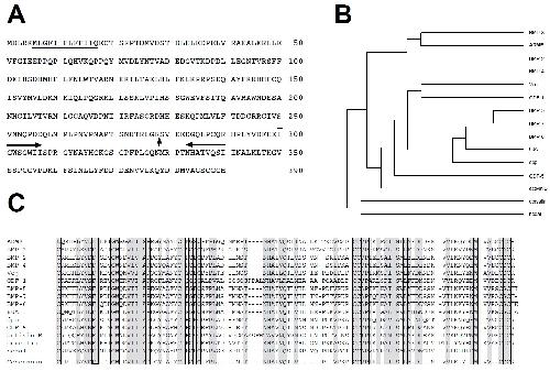 superfamily. (C) Amino acid alignment of ADMP with other TGF-b proteins. The diagrams in B and C were generated using GeneWorks