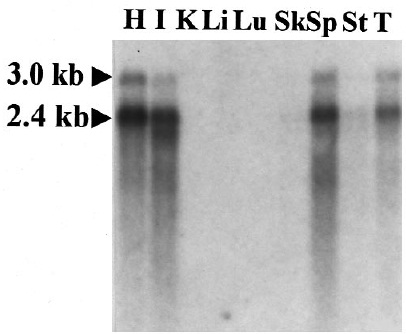 heart RNA; I, intestine RNA; K, kidney RNA; Li, liver RNA; Lu,
