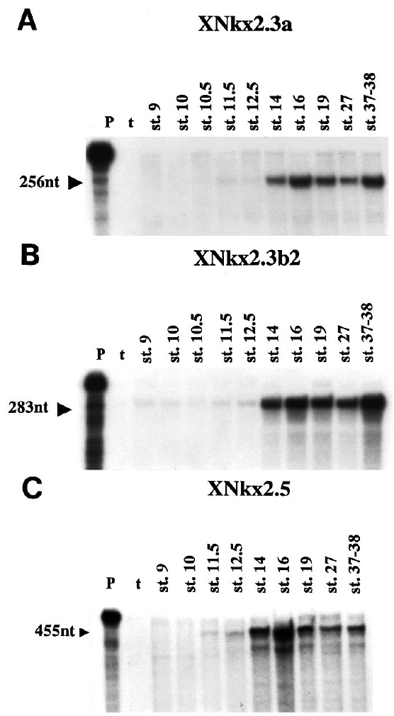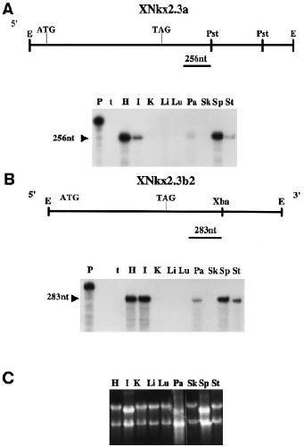 also recognizes XNkx-2.3b1. (C) Analytical formaldehyde agarose