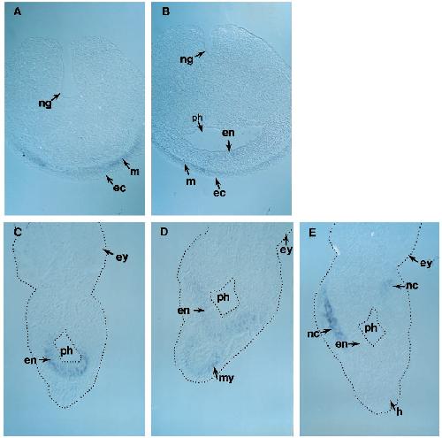 branchial arch neural crest; ng, neural groove; ph, pharynx.