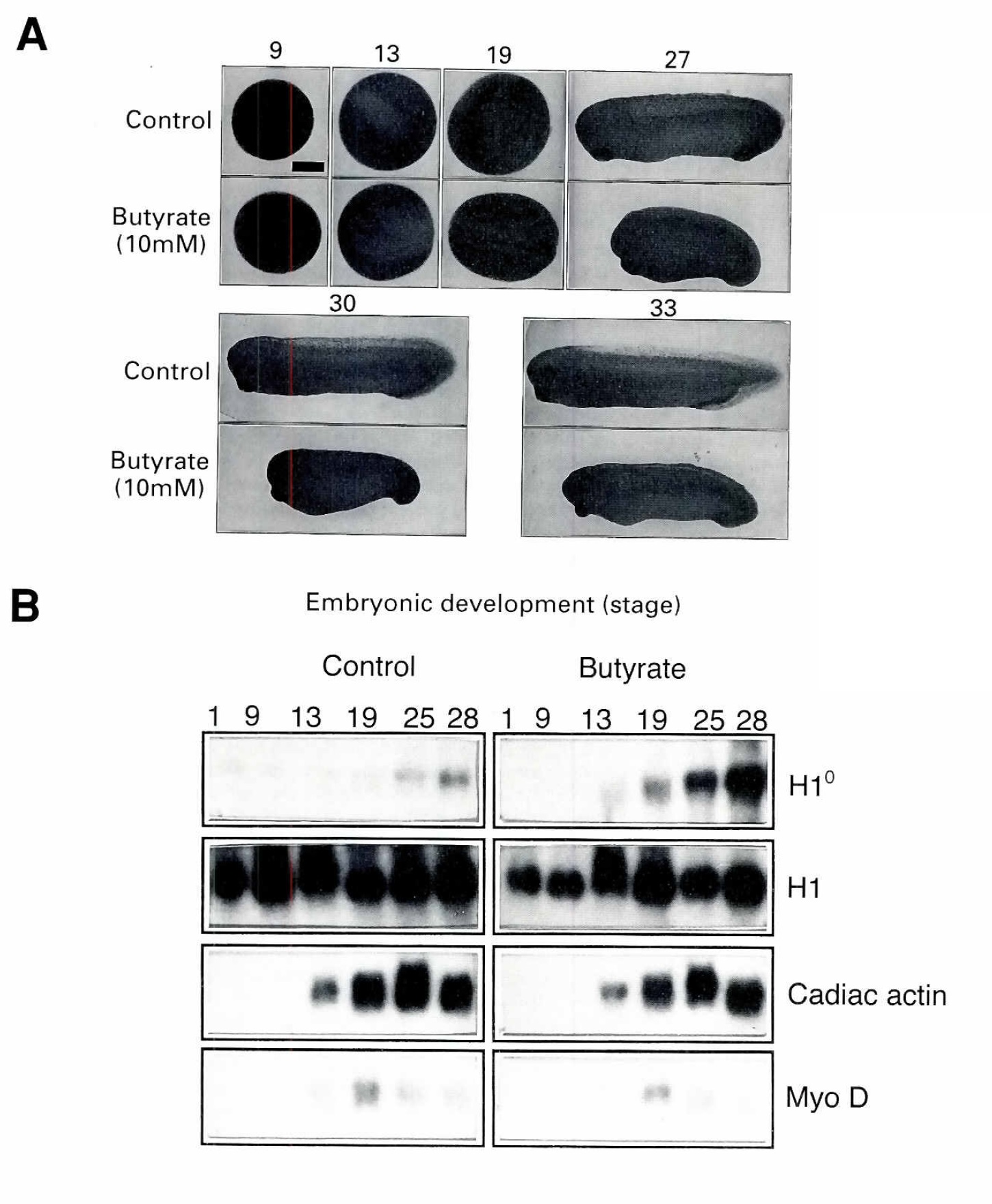 Fig. 2. Pattern of histone H4 acetylation and H10 accumulation in normal and butyrate treated gastrula. Successive cryosecrions were