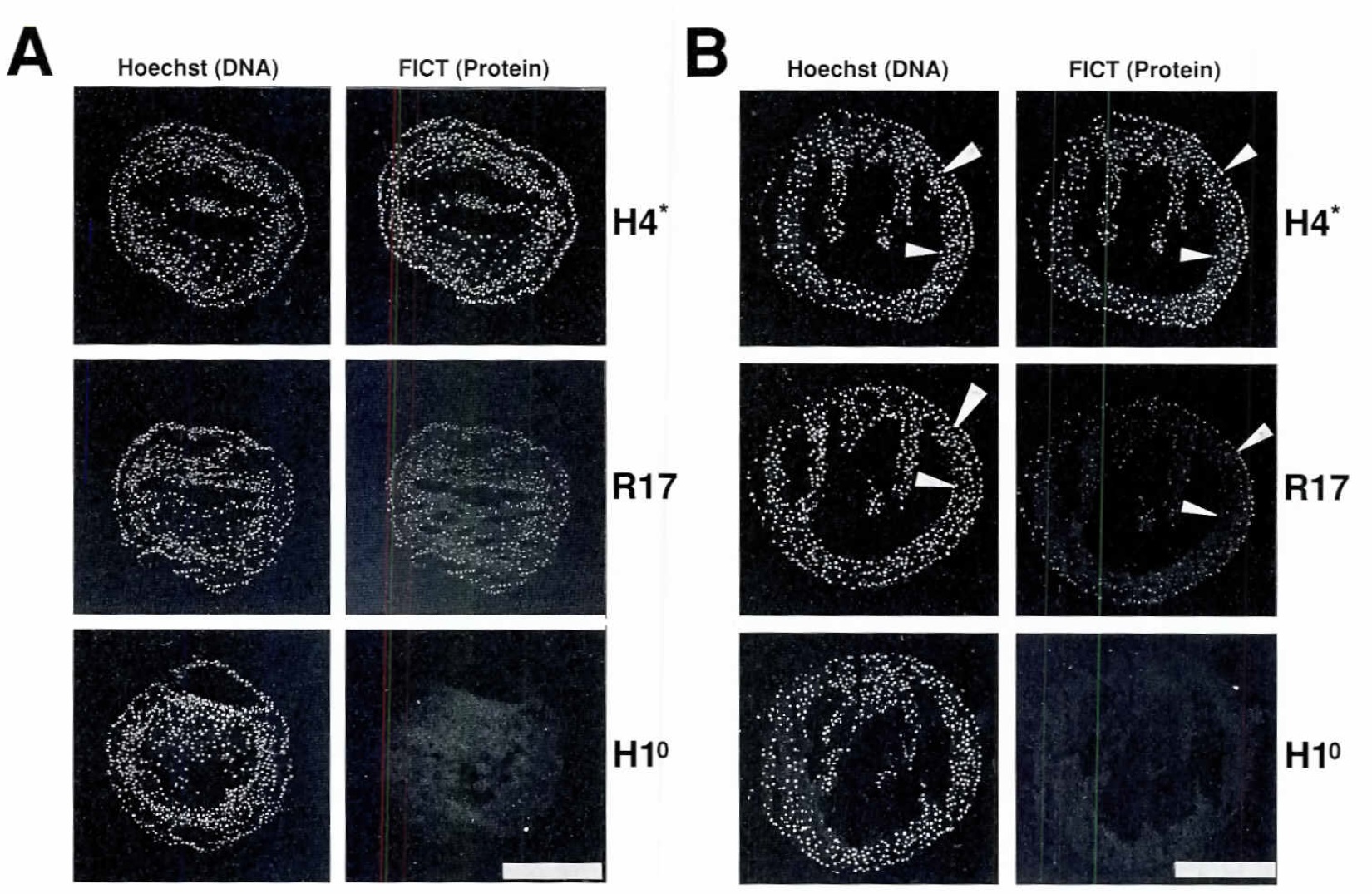 of histOne H4 (R17) and finally Hl° was detected by specific anti HID antibody (right panel!_ After immunodetection sections were counter-stained