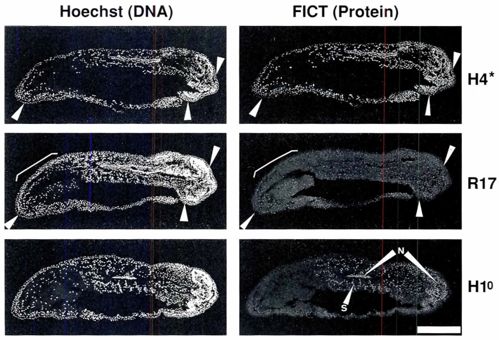 H4- indicates aeery/aced H4, R17shows nuclei containing hyperacetyfated H4, and H1° indicates the presence of histone H 1°.As In Fig. 2. nuclei in
