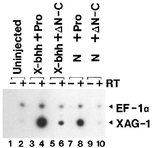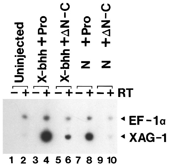 XAG-1 expression by X-bhh or N is reduced by co-injection of DN-C.