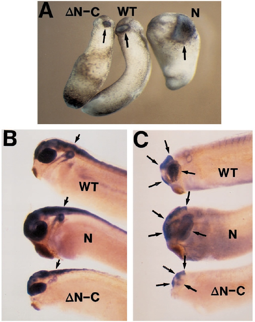 Fig. 6. Distinct effects of expression of N and DN-C in Xenopus embryos.