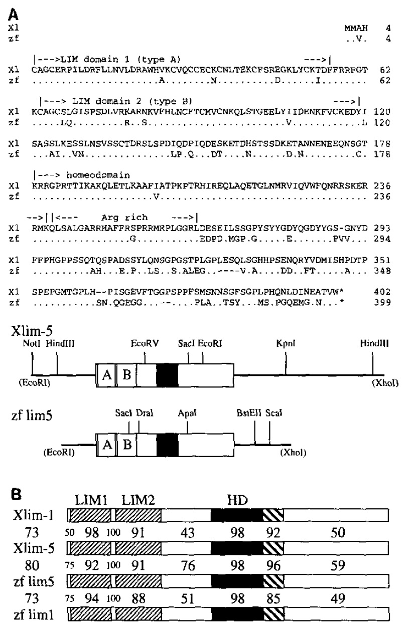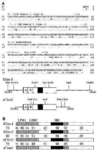 of Xenopus and zebrafish (zf) lim1 and lim5 proteins. Percentage o(