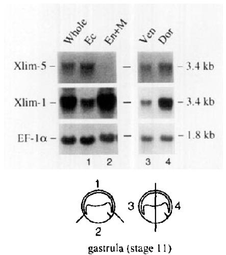 and filters were hybridized with Xlim-5, Xlim-1, and with EF-la as