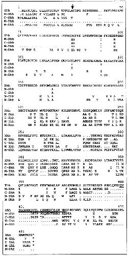 hedgehog (M-Dhh) (17). Blanks in the sequence indicate identical amino acids