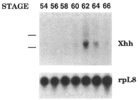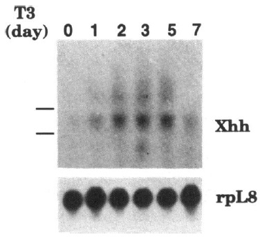using Xhh cDNA as a probe. The filter was also hybridized with rpL8 which