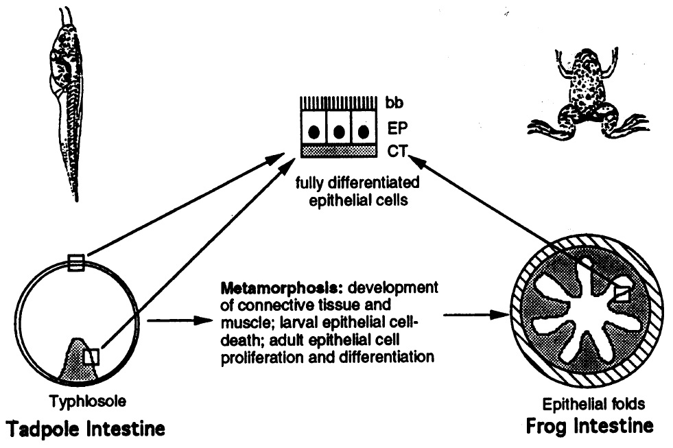 cells (55,56). There is a single fold in the intestine called the typhlosole. During metamorphosis extensive remodeling occurs to create the adult frogintestine (9,10).