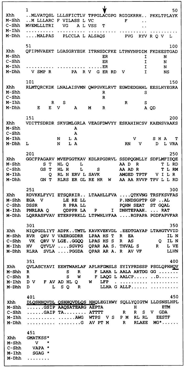 hedgehog (Xhh), mouse sonic hedgehog (M-Shh) (17), chicken sonic hedgehog