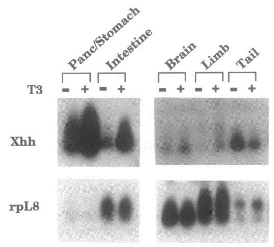 Figure 7. Tissue specific induction ofXhh by TH. Tadpoles at stage 52-54 were