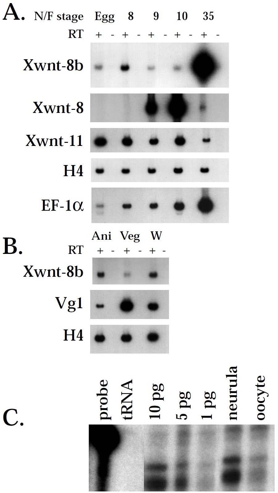 embryos. (A) Analysis by RT-PCR of the expression of Xwnt-8b, Xwnt-8,