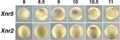 Nodal-related gene Xnr5 is amplified in the Xenopus genome.