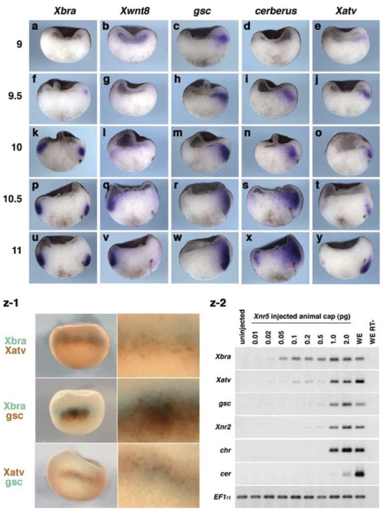 Genes referenced: cer1 chrd gsc lefty1 nodal nodal1 nodal2 nodal5 nodal5.2 nodal5.4 nodal6 tbxt wnt8a