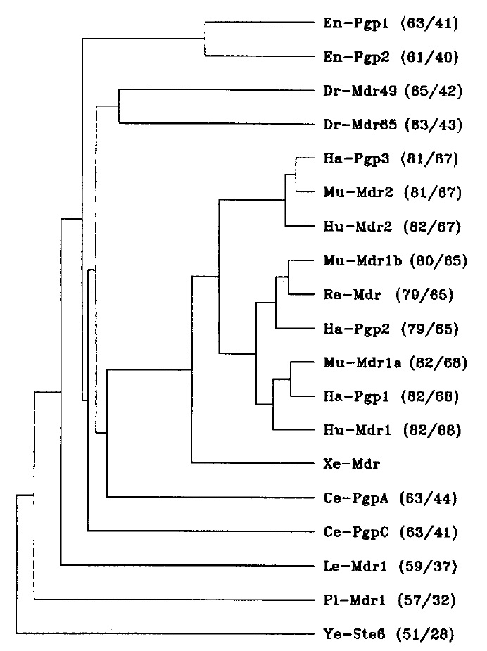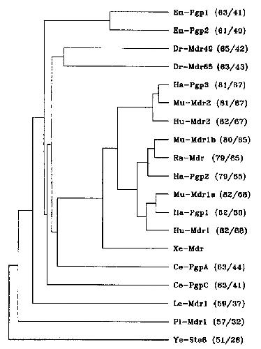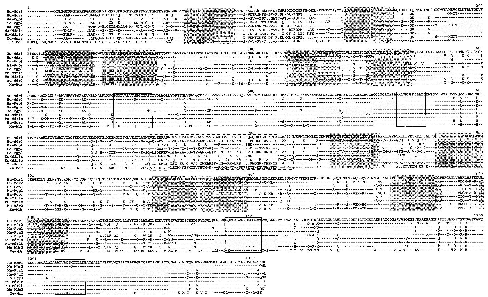mdrlb, and mdr2) [12,13,18] and the hamster (pgpl, pgp2 and pgp3) [56], were aligned with the deduced amino acid sequence of the Xenopus gene. The alignment was created using the PILEUP program