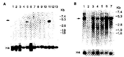 a 1.5% agarose gel and transfened by capillary action to a Genescreen membrane that was hybridized with fragment B. As a control, the same blot was