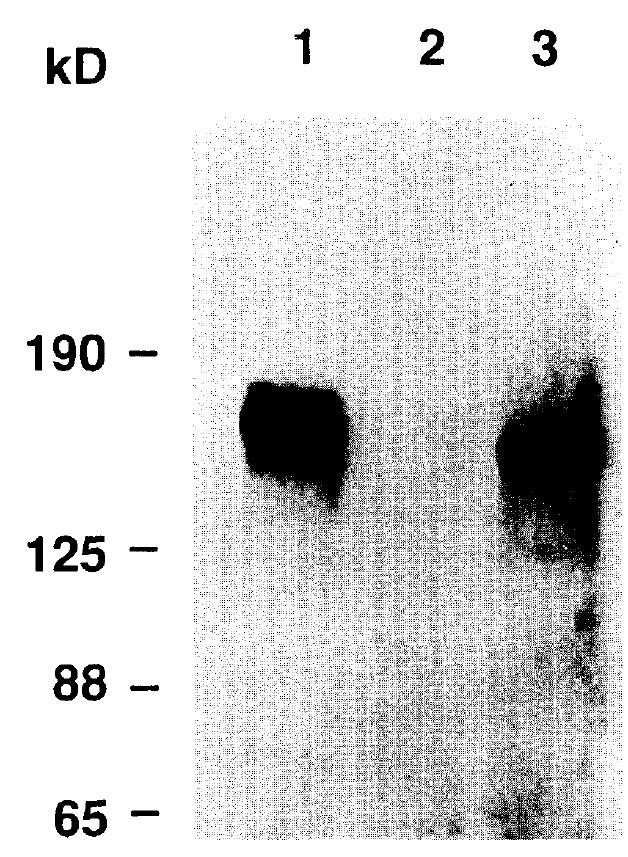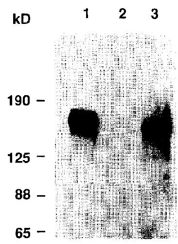filters and immunoprobed with antibody 5. Lane 1, membranes from
