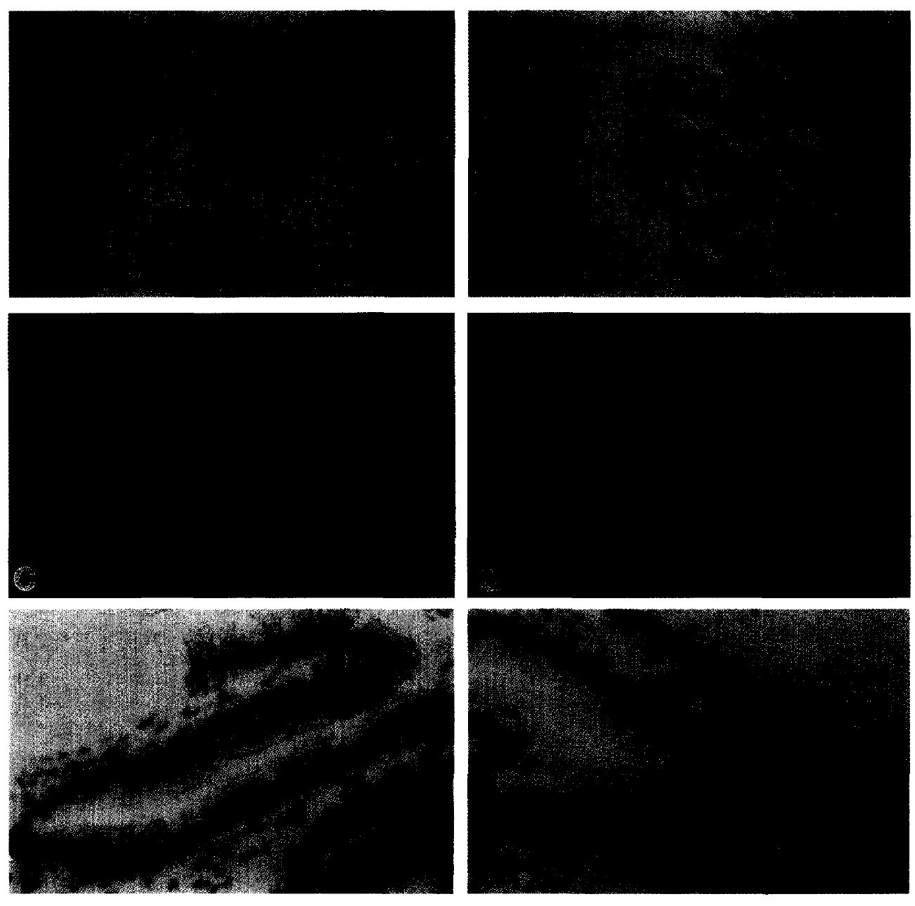 (panels a,c and e), and sense (panels b,d and f), RNA probes. Panels a and b show brightfield view of hematoxylin and eosin stained small intestine. Panels