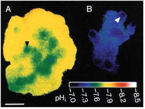 localized pHi minima or maxima. Bar indicates