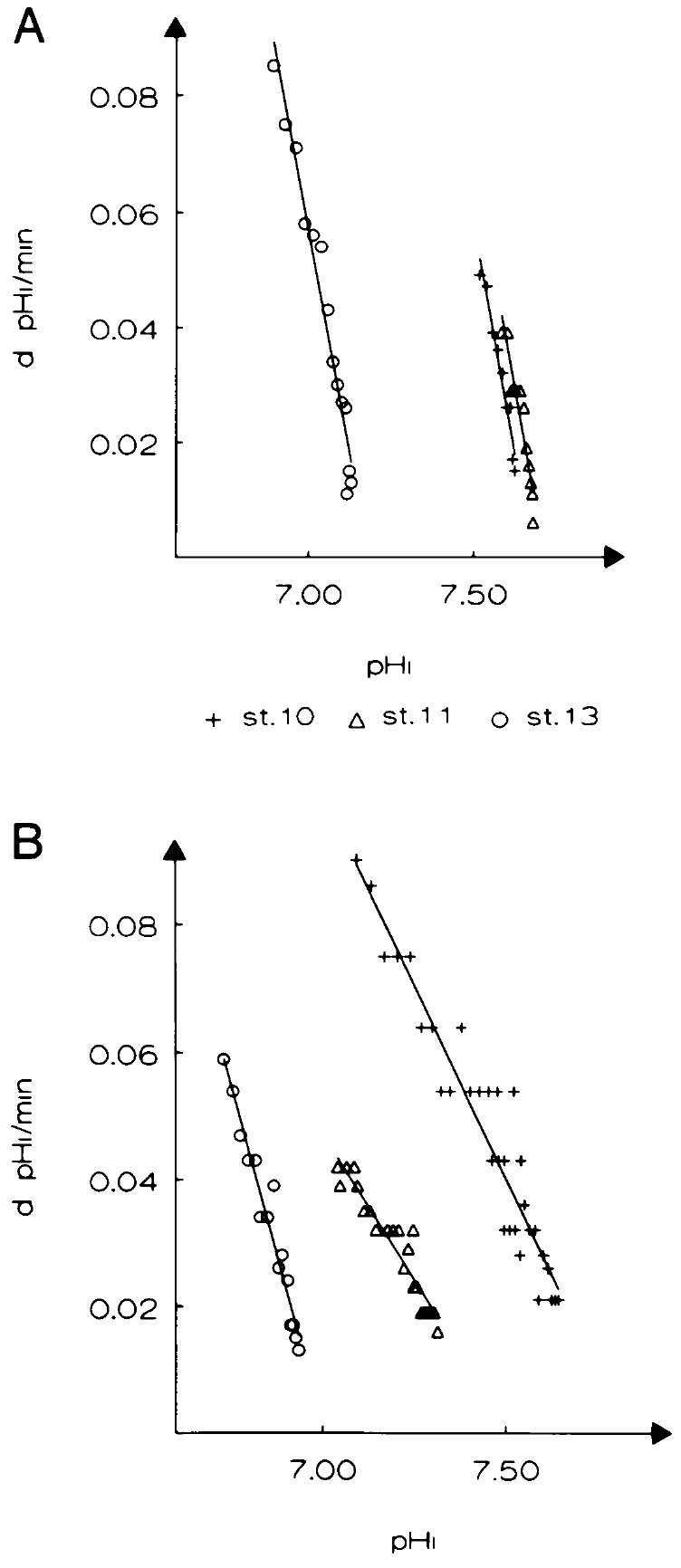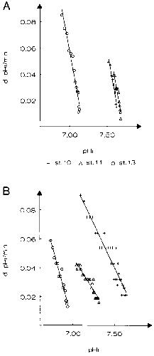of the medium (pHo). At stage 10 and stage13 the pHi of cells