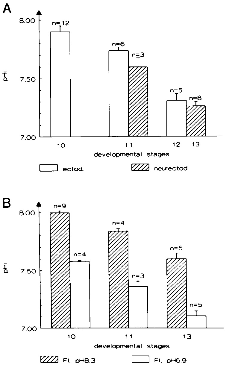 Fig. 5. pHi recordings in ectoderm and neurectoderm. (A) Acid load