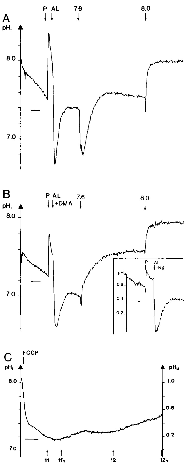 (compare with A). The extent of the pHi decrease observed during
