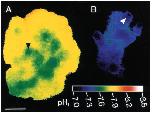 (B) Image of intracellular BCECF distribution in