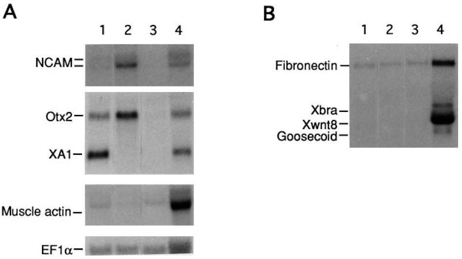 NCAM are shown (Kintner and Melton, 1987). EF1a and fibronectin probes are controls for loading.