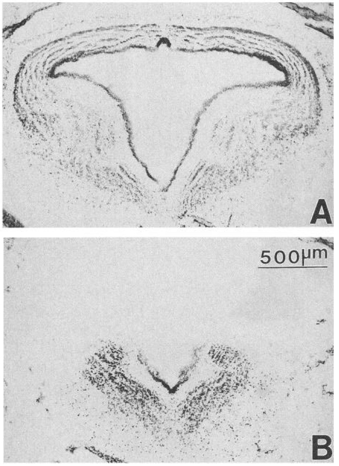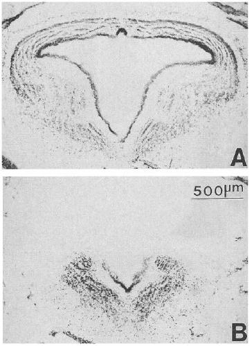 Figure 9. Sections taken from the same animals, and neighboring those shown in Figure 8, but stained with the monoclonal antibody (HO5