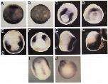 BMP·4 RNA probe. (A) Lateral view of a stage 11 embryo, dorsal is up. The blastopore is to the upper right. BMP-4 expression is absent from