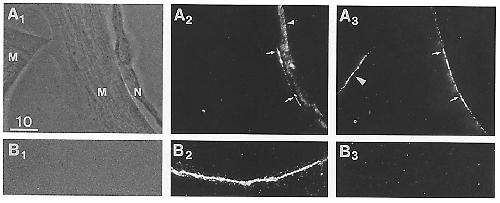 before immunofluorescent staining, as shown in BI (phase-contrast), B2 (agrin), and B3 (aDG). Bar, 10 #m.