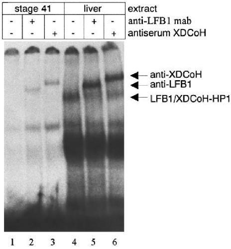 Fig. 3. Simultanous binding of LFB1 and DCoH to HP1 in extracts