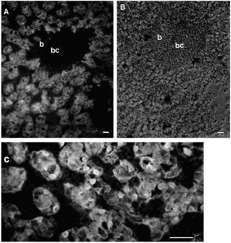 Fig. 7. Localization of XDCoH in the Xenopus embryo. Whole-mount staining of different development stages was performed using an affinity-purified polyclonal XDCoH specific antiserum as the rst antibody and an enzyme linked secondary antibody. (A) The upper 4-cell stage embryo is a control for antibody speciï¬ty and was incubated with the XDCoH-speciï¬c antiserum that was depleted using recombinant XDCoH protein. (B,C) A lateral and animal view of a 48-cell stage embryo (stage 6.5),