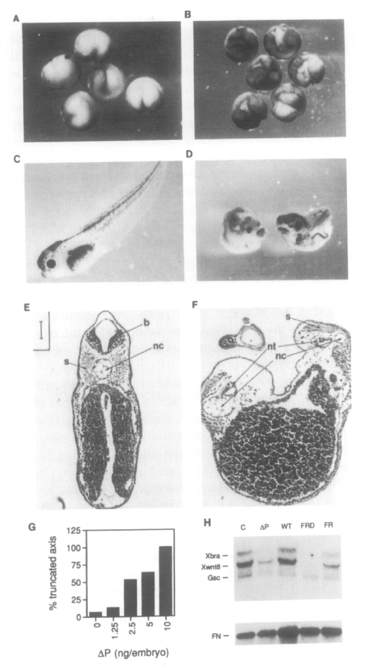 section, a AP RNA-injected embryo is shown (F). Split notochord and