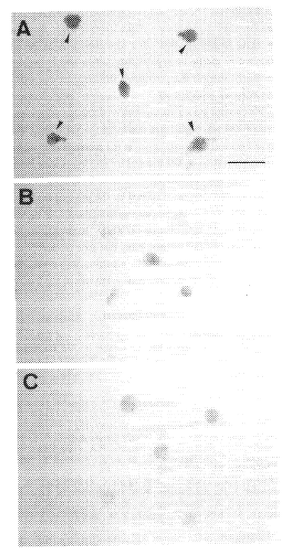 Animal caps were incubated with or without activin (10 ng/ml) and then subjected to the whole mount in situ hybridization with antisense and sense probe of Xhh. A) Activin-treatedanimal cap hybridized with antisense probe. B) Activin-treated animal cap hybridized with sense probe. C) Untreatedanimalcaphybridizedwithantisenseprobe. Arrowheads indicate the positivesignal of Xhh. Scale bar indicates 1 mm.
