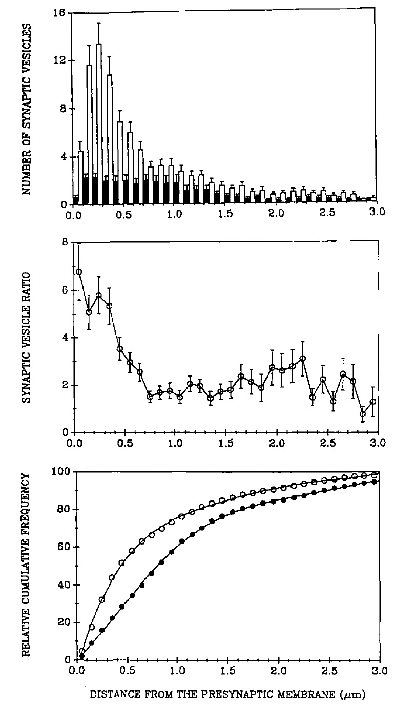 FIG. 6. Morphometric analysis of the distribution of small synaptic vesicles
