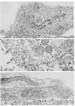 terminal synaptic vesicles do not appear to be concentrated at contact sites (X24 000). (Middle) Infolding of the muscle membrane, with marked thickening of