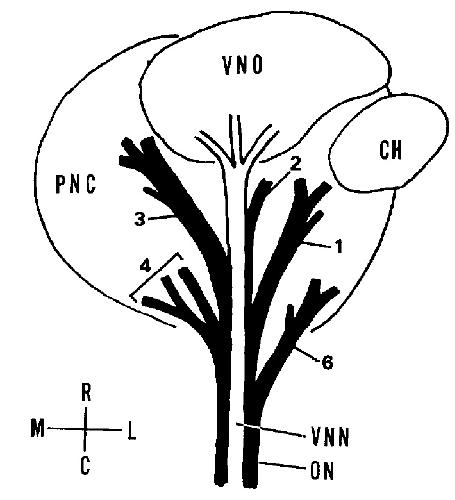 nerve (VW) which runs along the ventral aspect of the olfactory