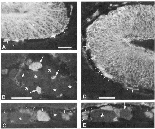 with MAbA5 in different degrees. Asterisk, the Bowmanâs gland. Scale bars: A and D, 50 hrn; B, 200 pm for B, C, and E.