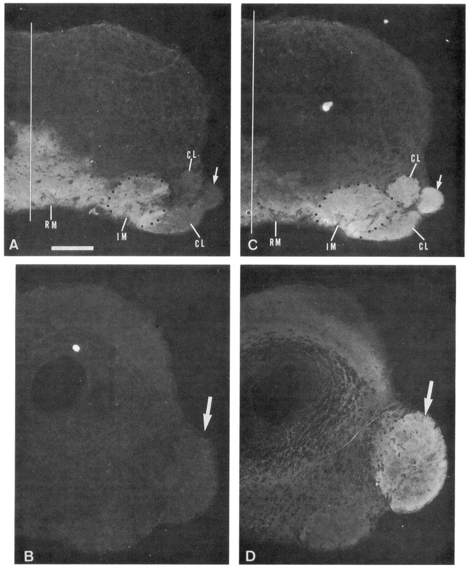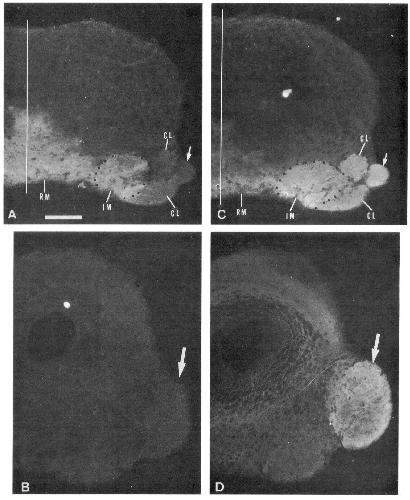 and C indicate the middle of the cerebrum. Scale bar (in A), 50 pm for A-D.