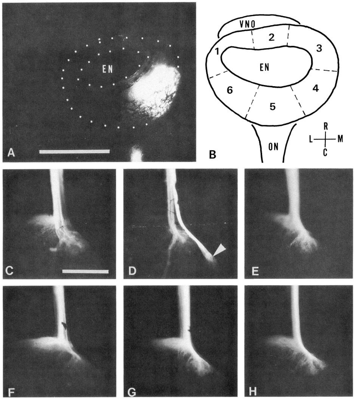 nerve. CH, the choana; R, rostral; C, caudal; M, medial; L, lateral.